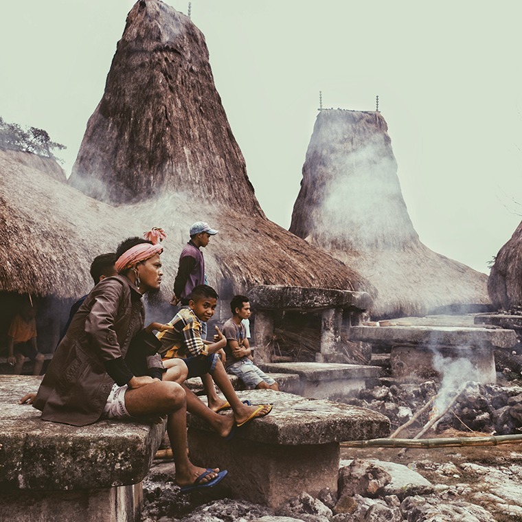 Мегалиты Сумбы бывает в среднем метр на метр, крышка побольше. Но вот королевские могут достигать 5 метров в длину и метра три в высоту. Весит это великолепие сотни тонн. Происходит это все следующим образом. В каньоне реки выбирают огромный камень и стачивают его молотками до прямоугольной формы. А потом обвязывают верёвками и тащат в деревню. Все надгробия всегда стоят в центре деревень. Тащат в ручную, подкладывая под камень бревна. И знаете сколько? От недели до месяцев! Сотни людей. Никаких вам машин. Только в ручную. Само собой, всех этих людей нужно все это время кормить, поить кофе и давать сигареты. Понимаете масштаб затрат? В долги с похорон могут входить несколько поколений семьи. Тащат в основном мужики, но для женщин тоже честь принять участие.